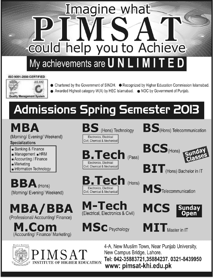 04 Feb admission spring semester 2013 in PIMSAT Posted at 18:33h in News by cafels2 0 Comments 0 Likes Click here to submit your review. Submit your review Name: *Email: * Rating: 12345 Review: * Required Field Check this box to confirm you are human. Powered by WP Customer Reviews