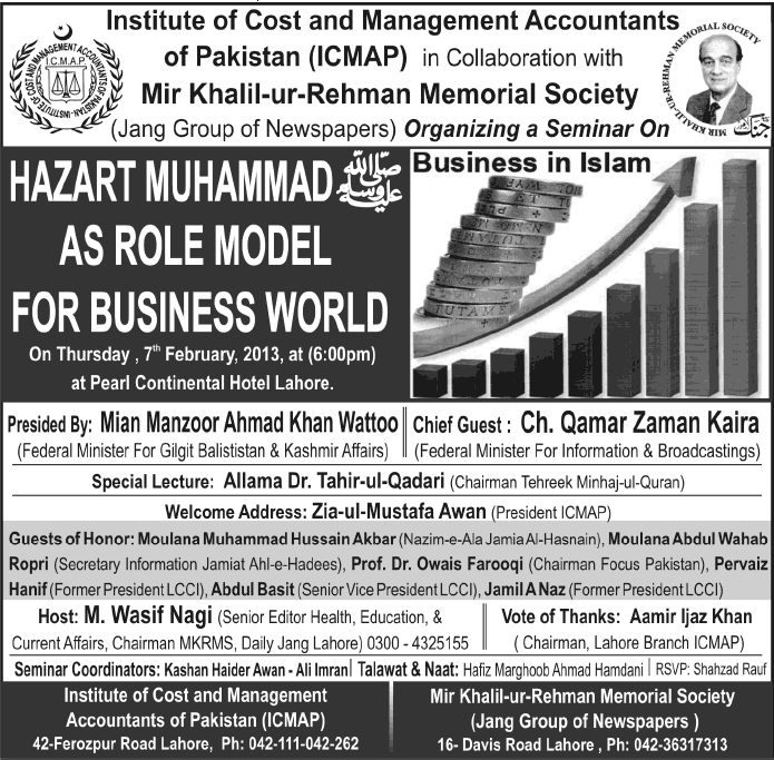 05 Feb Institute of Cost and Management Accountants of Pakistanhazrat Muhammad as role model for business world